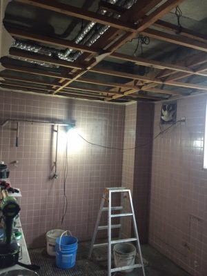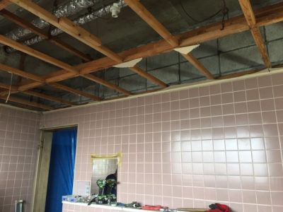 他のフロアでは便器・天井が解体され、広々空間に。