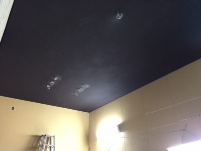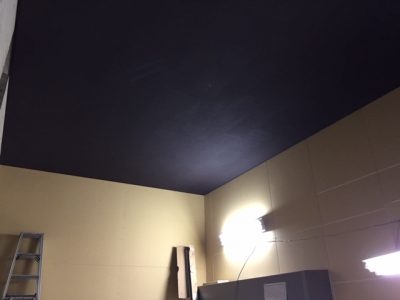 1F部分は壁・天井共に遮音パネルで天井が黒の化粧。
